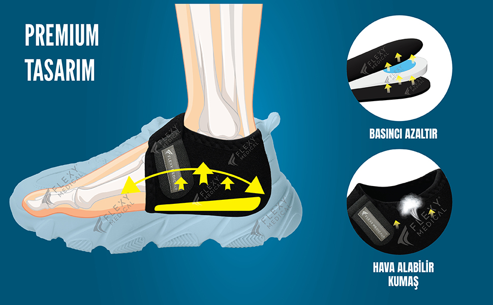 Topuk Dikeni Desteği: Topuğa binen yükü eşit dağıtarak sert zeminle temasınızı yumuşatır. Özellikle sabah uyandığınızda hissettiğiniz ilk adım ağrısını azaltır.